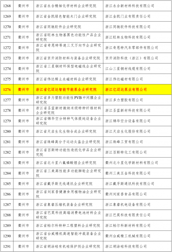 據(jù)全球液流電池網(wǎng)獲悉,近日,2025年度浙江省重點(diǎn)企業(yè)研究院、企業(yè)研究院認(rèn)定名單新鮮出爐,浙江億邁達(dá)泵業(yè)有限公司入選省企業(yè)研究院認(rèn)定名單。